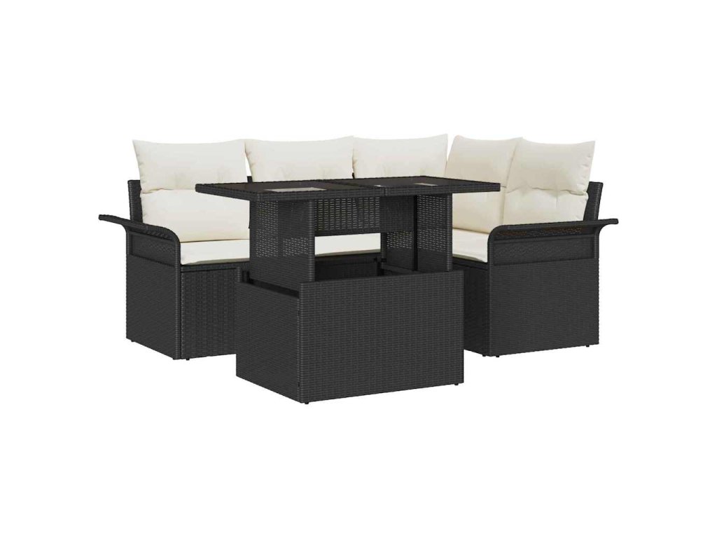 Sada zahradních pohovek s polštářem 5 pcs Černá Poly ratan