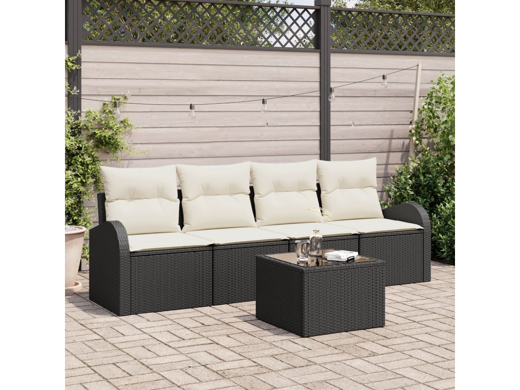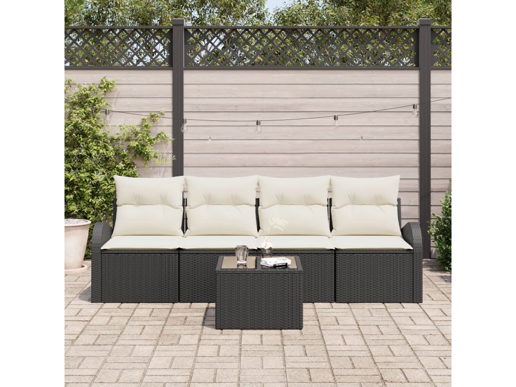 Odolné materiály Tento pohovkový set je vyrobený z kvalitního poly ratanu, který je odolný vůči povětrnostním vlivům, takže zůstane v pohodě za různých podmínek – ideální pro celoroční užití na terase nebo zahradě. Obsah setu S masivním ocelovým rámem a poly ratanovým zadem, set přichází s pohodlnými polstry s odnímatelnými a pratelnými potahy, což znamená snadnou údržbu a dlouhé pohodlí. Temperované skleněné stolky jsou silné a lehce se čistí. Jedinečné vlastnosti Tento pohovkový set vyniká lehkým designem, což usnadňuje přeuspořádání vaší terasy. UV ochrana zajišťuje, že si dlouho uchová svůj vzhled. Modulární struktura dává uživatelům možnost přizpůsobit jeho uspořádání podle potřeby. Univerzální použití Navržený pro léto, tento set se skvěle hodí na terasy a do zahrad, vytváří příjemnou atmosféru pro relaxaci a setkání. Jeho moderní styl ladí s různými prostředími, takže se hodí do rezidenčních i komerčních prostorů. Údržba Pro zachování vzhledu stačí po použití otřít vlhkým hadříkem a v dešti ho zakrýt, abyste prodloužili jeho životnost a estetiku.- Barva: Černá