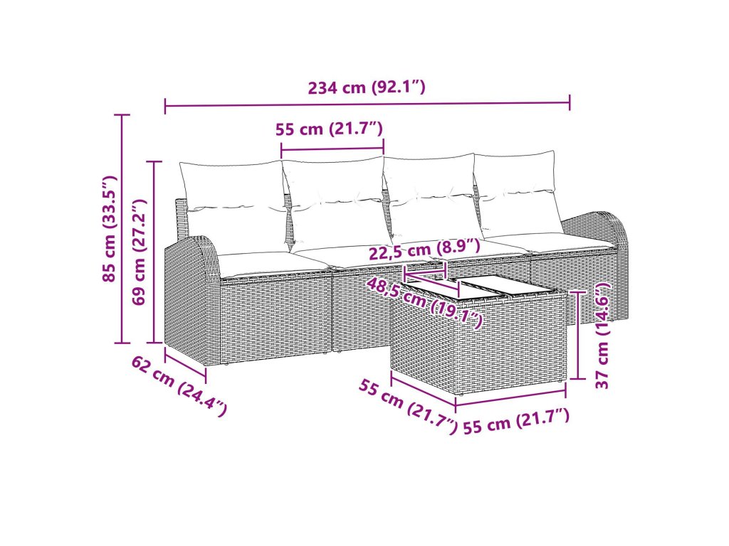 Tento moderní zahradní pohovkový set skvěle spojuje styl a funkčnost, takže se stane centrem vašeho venkovního prostoru. S elegantními liniemi a současným designem obohatí vaše venkovní zážitky a poskytne pohodlné sezení pro vaše setkání. Jeho modulární povaha umožňuje různé konfigurace, které se hodí do jakéhokoli prostoru, a odolné materiály zajistí dlouhou životnost.