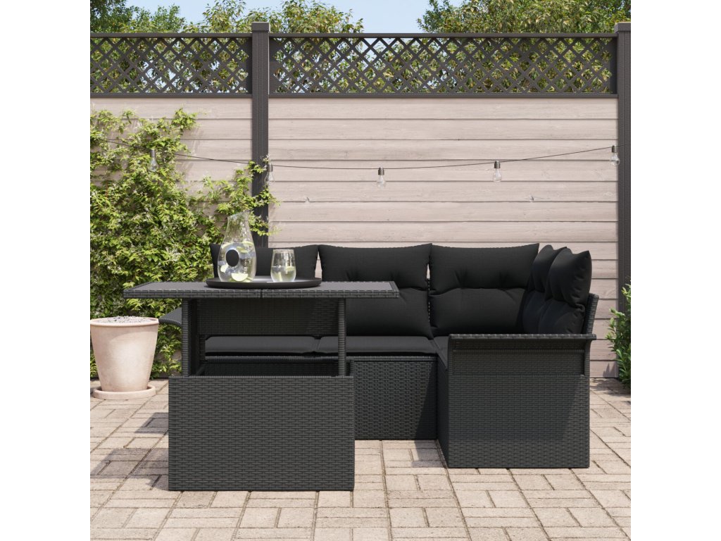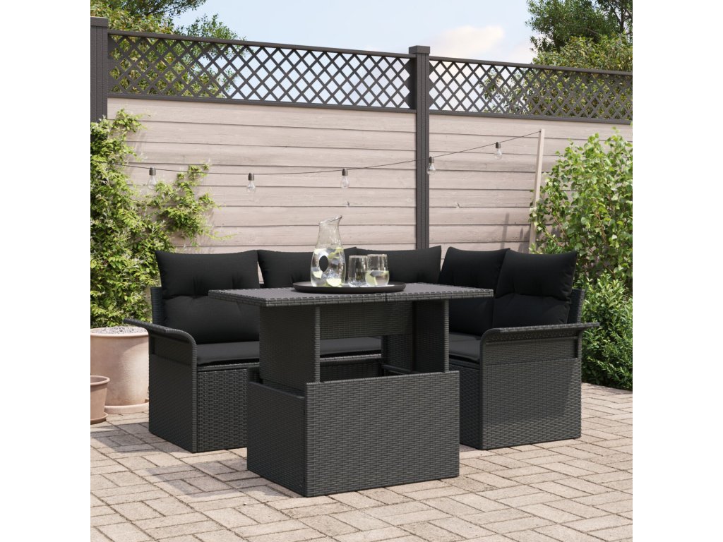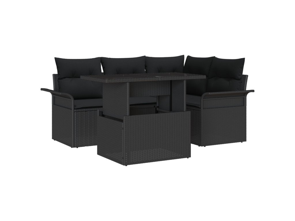 Sada zahradních pohovek s polštářem 5 pcs Černá Poly ratan