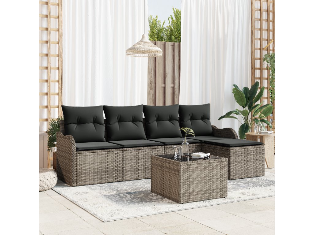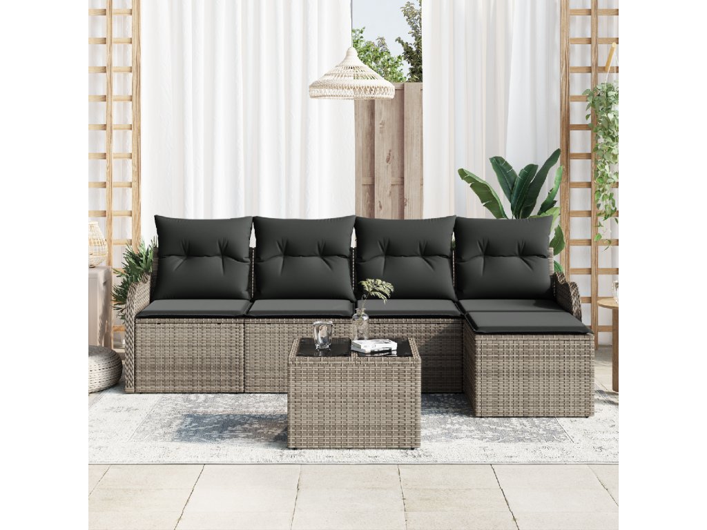 Sada zahradních pohovek s polštářem 6 pcs Černá Poly ratan