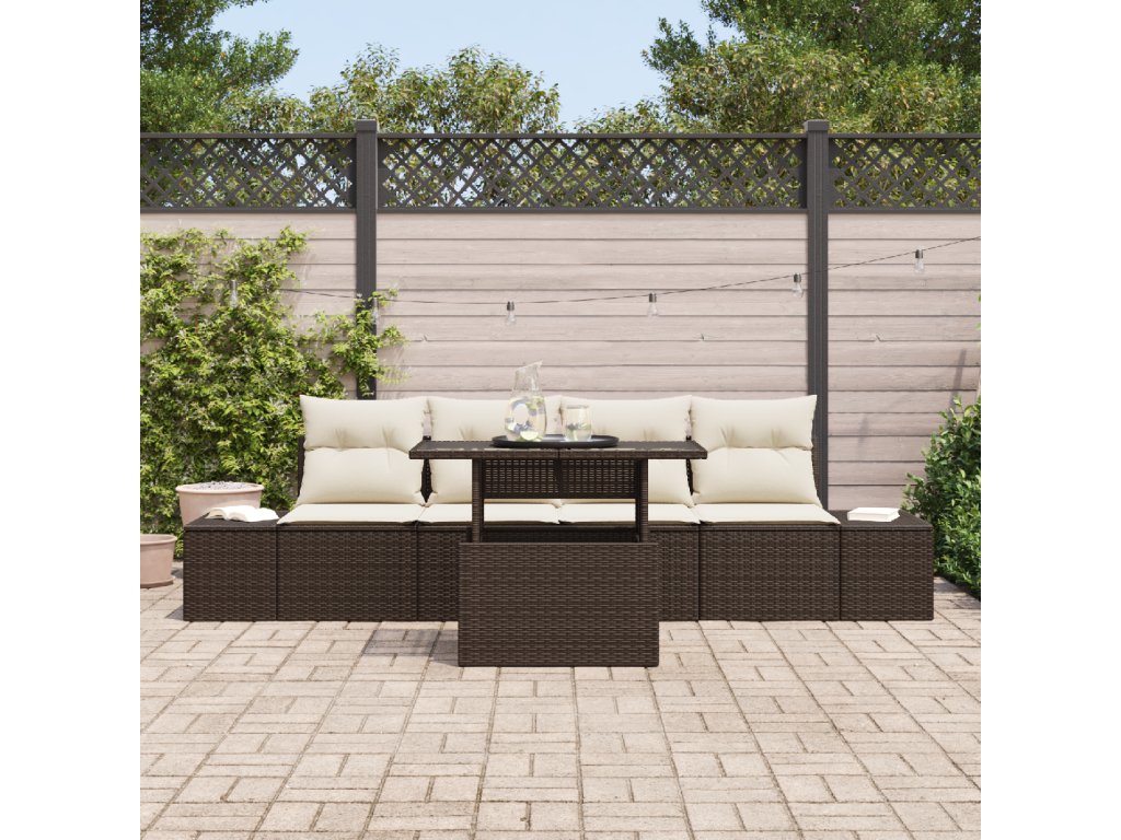 Set pohovek s polštářem 5 pcs Hnědá a krémová polyratan