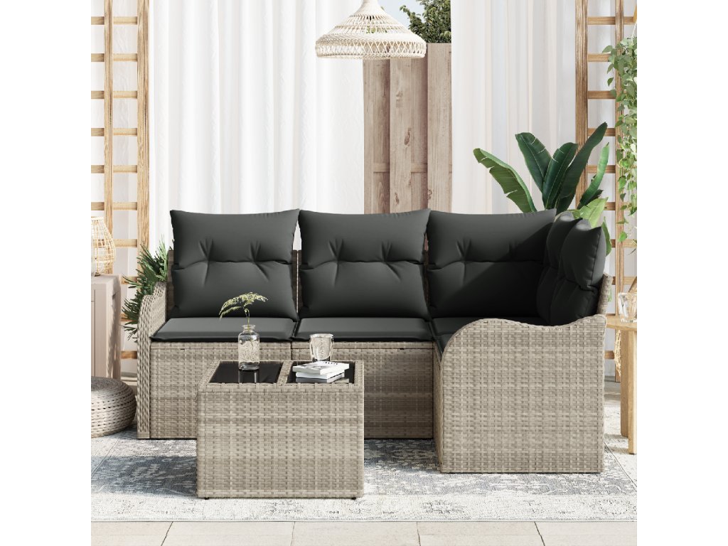 Odolné materiály: Konstrukce z kvalitního polyratanu a práškově lakované oceli zaručuje odolnost a dlouhou životnost. Materiály byly vybrány tak, aby zvládly venkovní podmínky a dlouho vypadaly dobře. Zakřivené opěrky rukou: Tento gauč má opěrky rukou vyrobené z polyratanu, které jsou pohodlné a stylové. Ergonomický design zajišťuje pohodlné sezení i dlouho na slunci. Modulární design: Flexibilita této soupravy ti umožňuje přizpůsobit uspořádání podle prostorových a estetických požadavků. Každý kus se snadno přeskupuje nebo rozšiřuje podle potřeby. Pohodlné prvky: S polyesterovými polštáři ti souprava nabízí měkké a pohodlné sezení. Polštáře mají odnímatelné a pratelné potahy, což usnadňuje údržbu. Praktická údržba: Souprava nevyžaduje moc péče; stačí ji otřít vlhkým hadříkem, aby zůstala v dobrém stavu. Používej venkovní kryt, když nábytek nepoužíváš, abys prodloužil jeho životnost.- Barva: Světle šedá