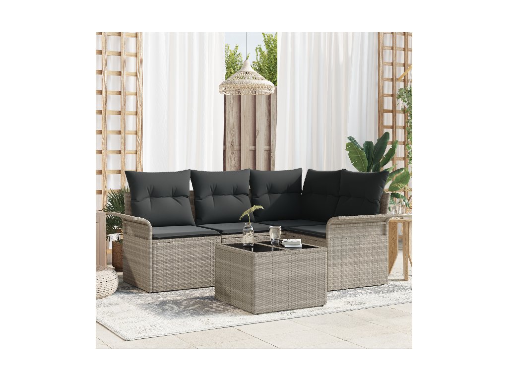 Sada zahradních pohovek s polštářem 5 pcs Světle šedá polyratan