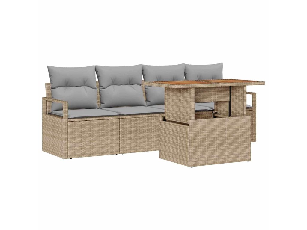 Sada zahradních pohovek s úložištěm 5 pcs Béžová Poly ratan