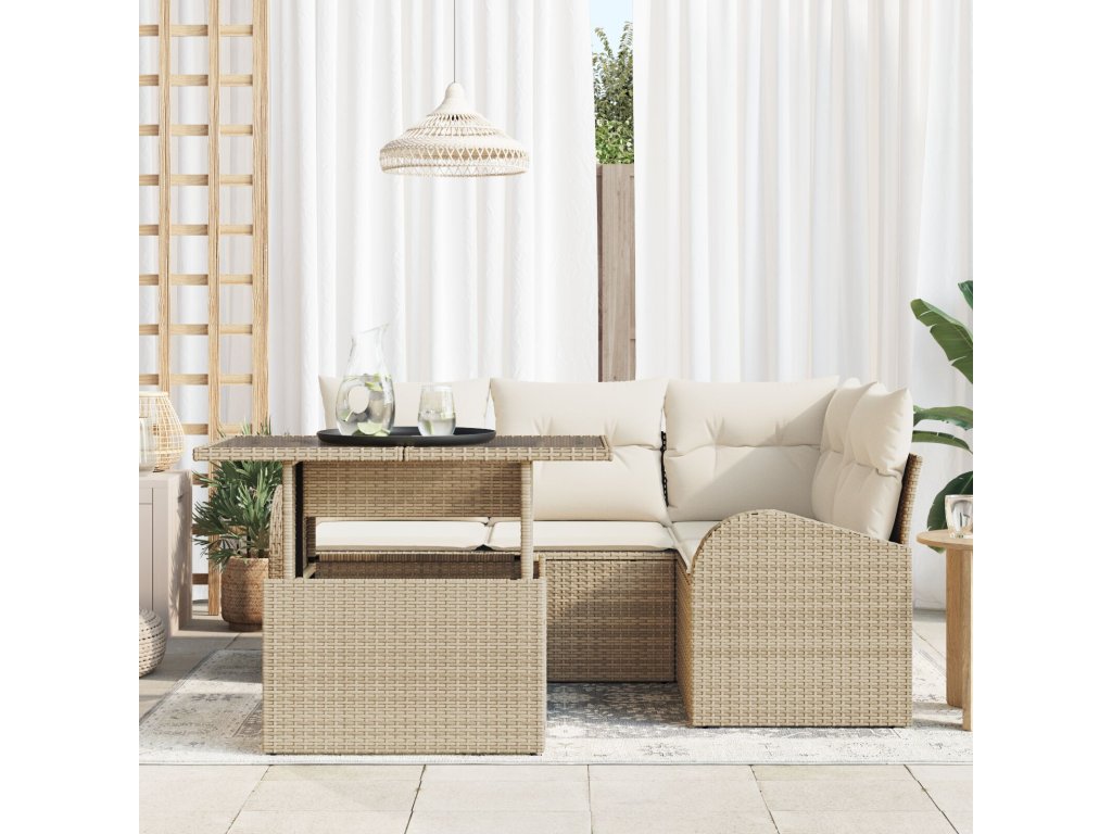 Sada zahradních pohovek s polštářem 5 pcs Béžová polyratan
