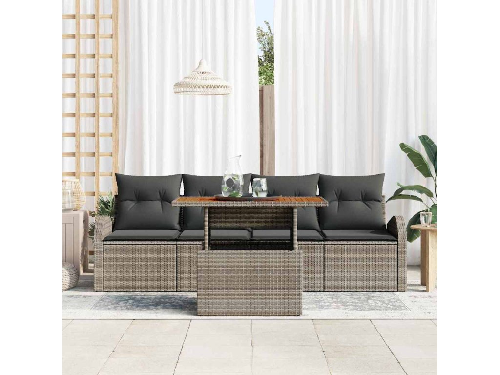 Sada zahradních pohovek s úložištěm 5 pcs Šedá Poly ratan