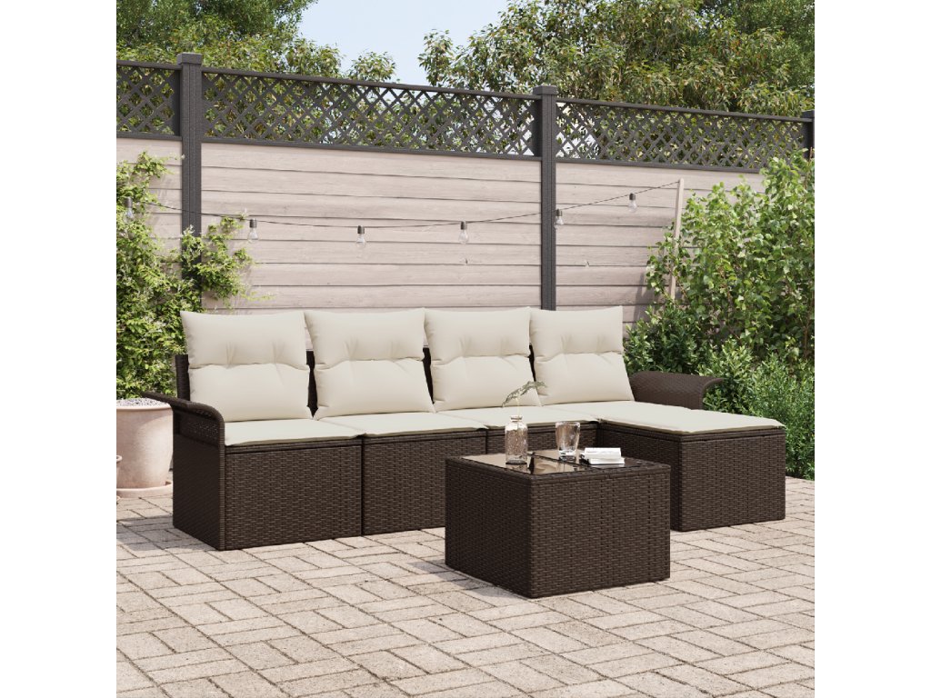 Sada zahradních pohovek s polštářem 6 pcs Hnědá polyratan