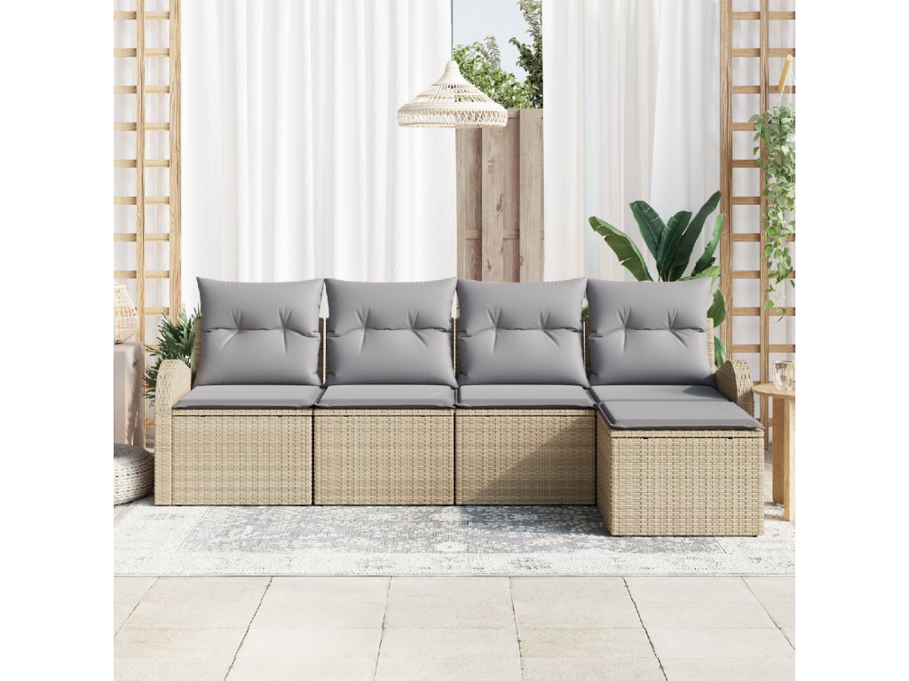 Set pohovek s polštářem 5 pcs Béžová a Světle šedá polyratan