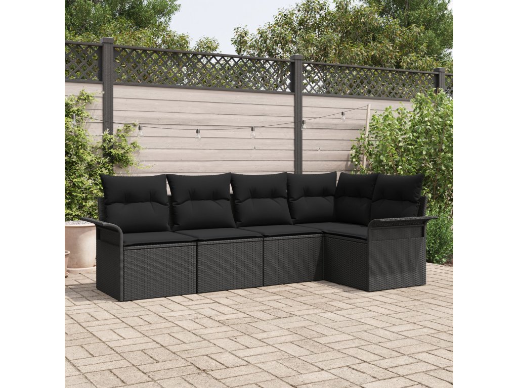 Sada zahradních pohovek s polštářem 5 pcs Černá polyratan