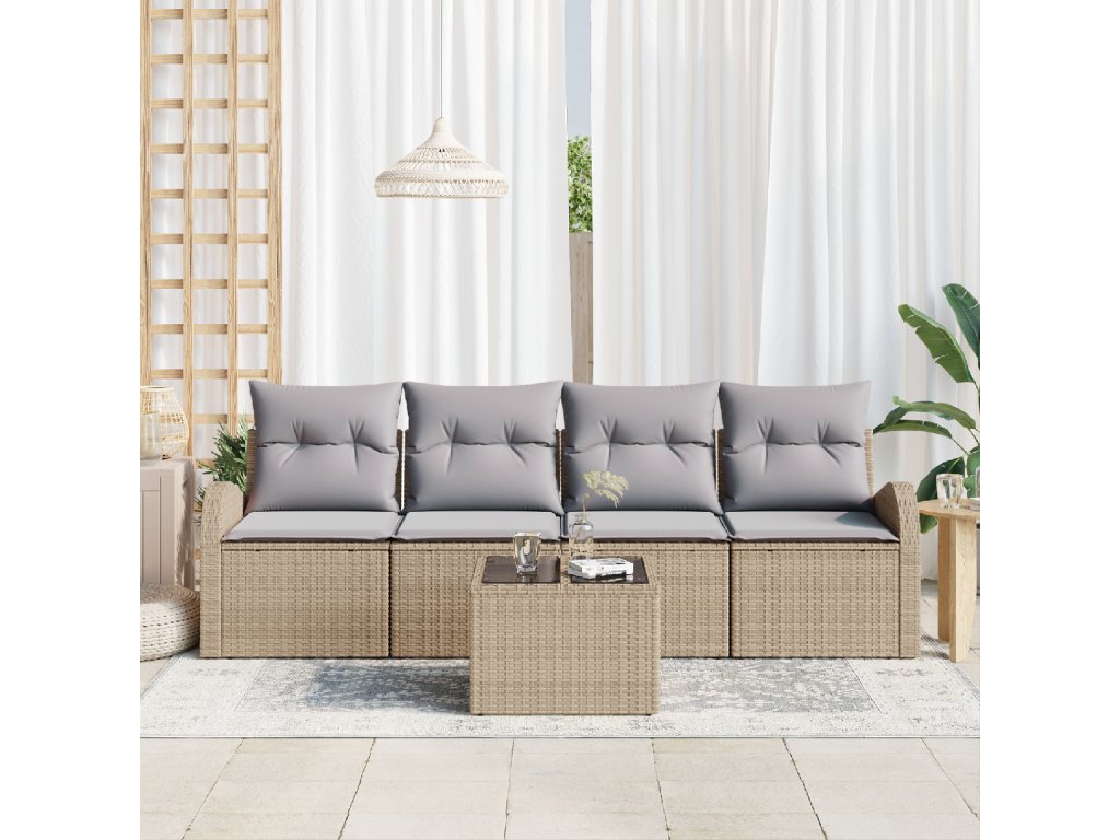Sada zahradních pohovek s polštářem 5 pcs Beige a šedá