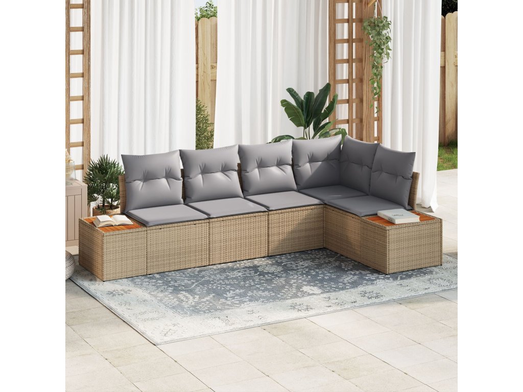 Sada zahradních pohovek s polštářem 5 pcs Béžová Poly ratan