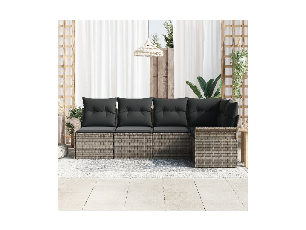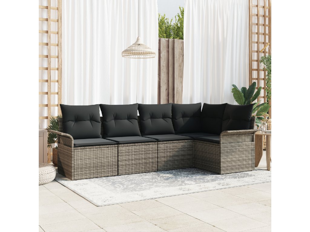 Sada zahradních pohovek s úložištěm 5 pcs Šedá polyratan