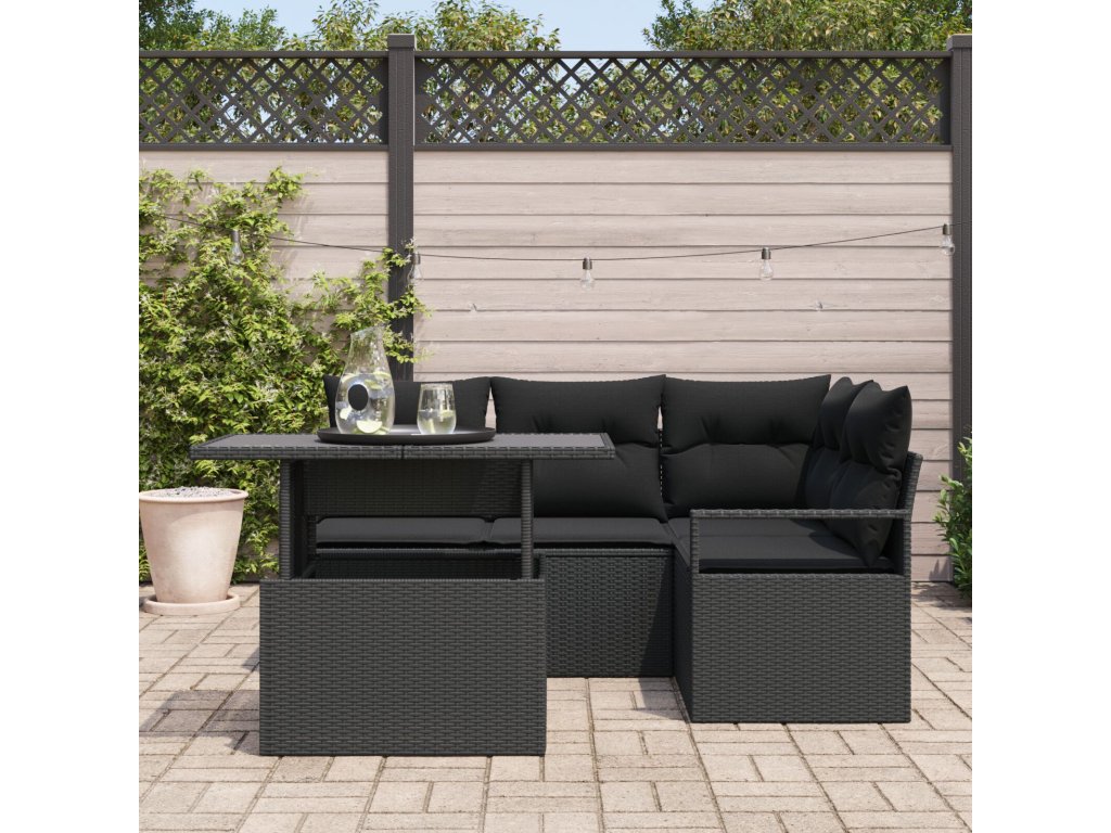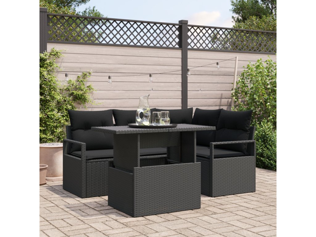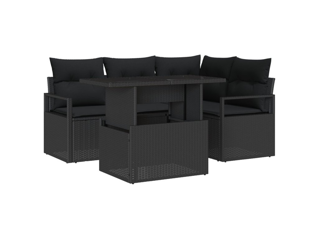 Sada zahradních pohovek s polštářem 5 pcs Černá polyratan