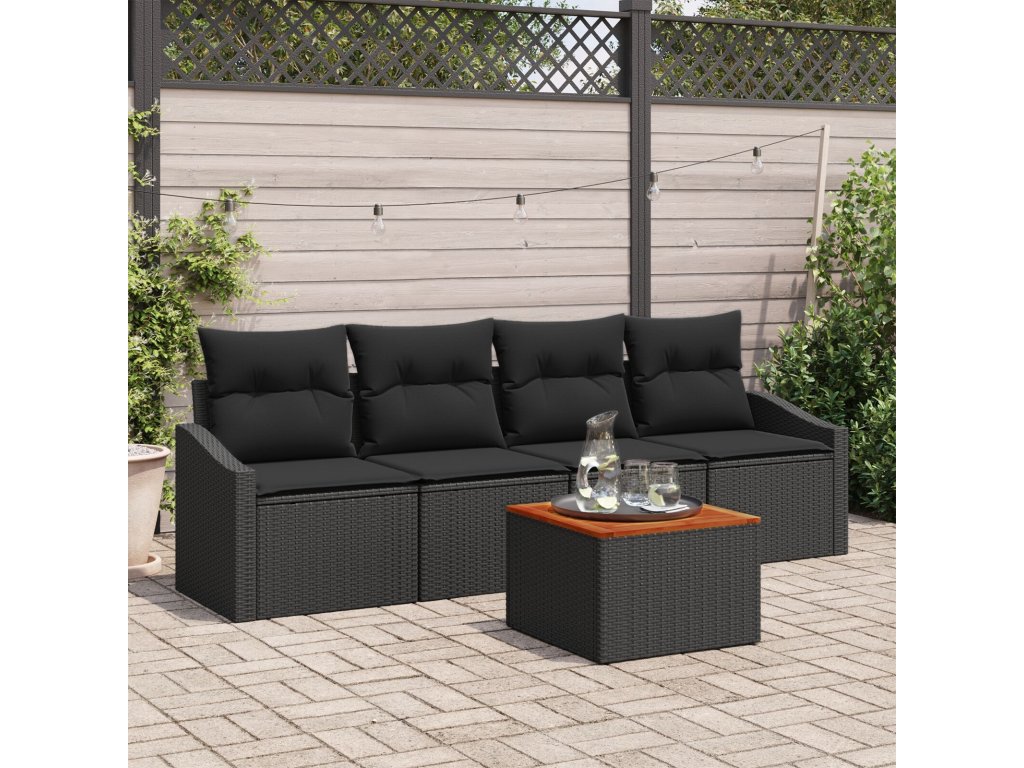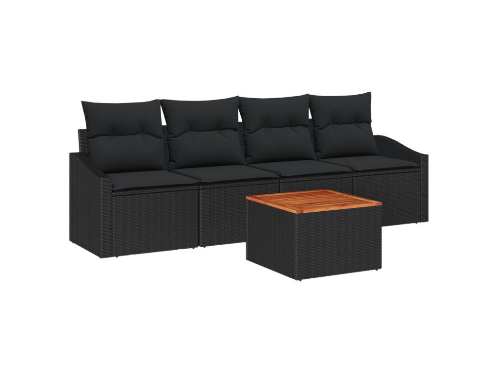 Sada zahradních pohovek s polštářem 5 pcs Černá Poly ratan