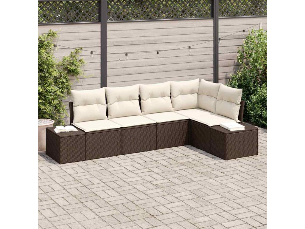 Sada zahradních pohovek 5 pcs Hnědá a krémová polyratan