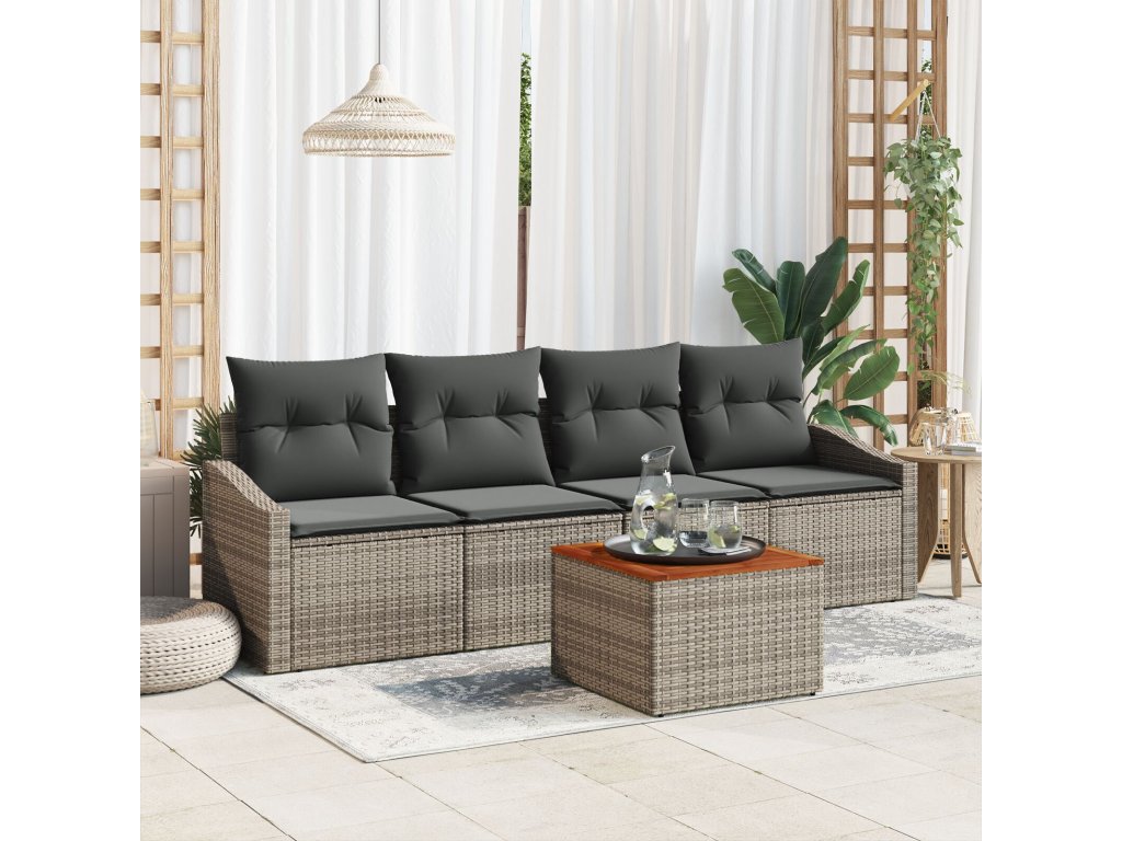 Sada zahradních pohovek s polštářem 5 pcs Šedá Poly ratan