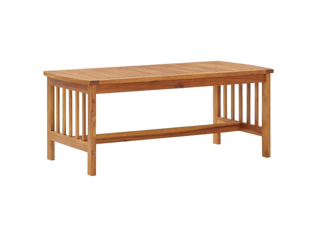 Set zahradního nábytku je zhotovený z masivního akáciového dřeva s olejovou úpravou, je stabilní a má dlouhou životnost. Konferenční stolek z masivní dřevěnou stolní deskou s lamelovým designem poslouží jako perfektní odkládací plocha pro vaše občerstvení, mísy s ovocem, dekorativní předměty a další nezbytnosti. Na lavičce a křesle s jemně zaobleným opěradlem a loketními opěrkami se velmi pohodlně sedí.