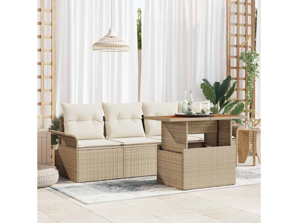 Sada zahradních pohovek s úložištěm 5 pcs Béžová Poly ratan