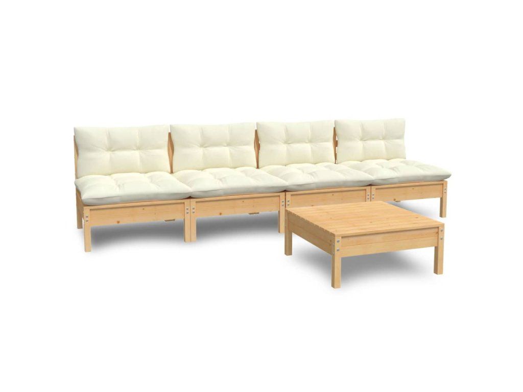 5dílná zahradní sedací souprava s krémovými poduškami borovice 3096130