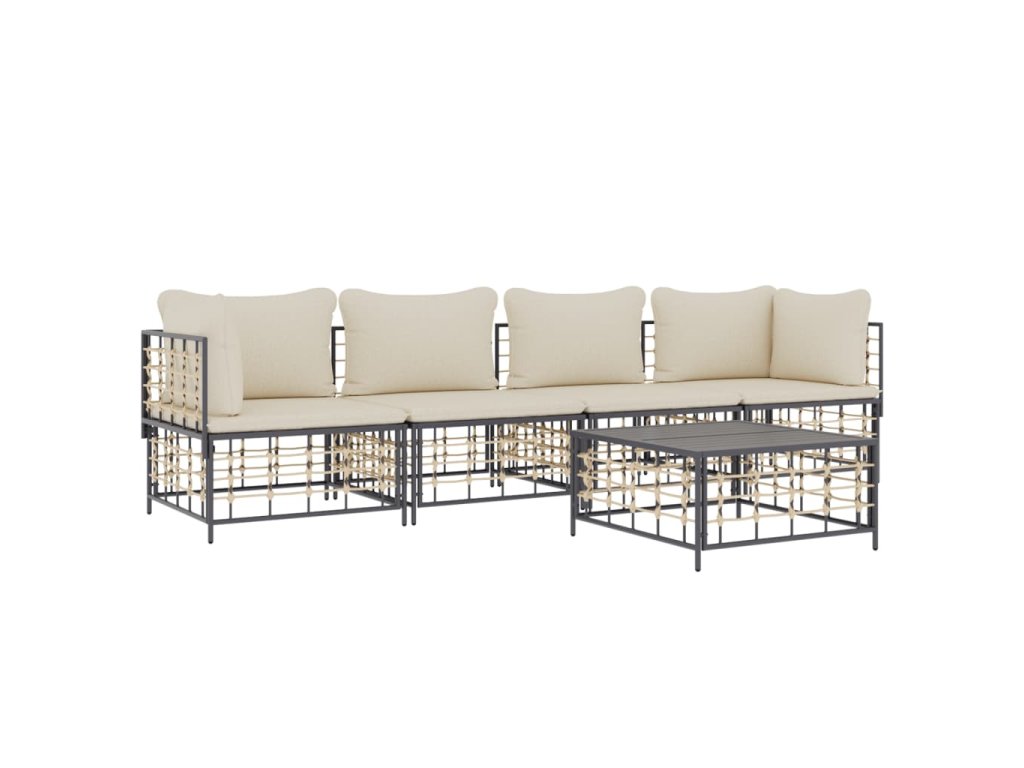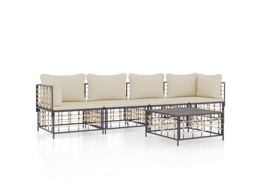 5dílná zahradní sedací souprava s poduškami antracit polyratan