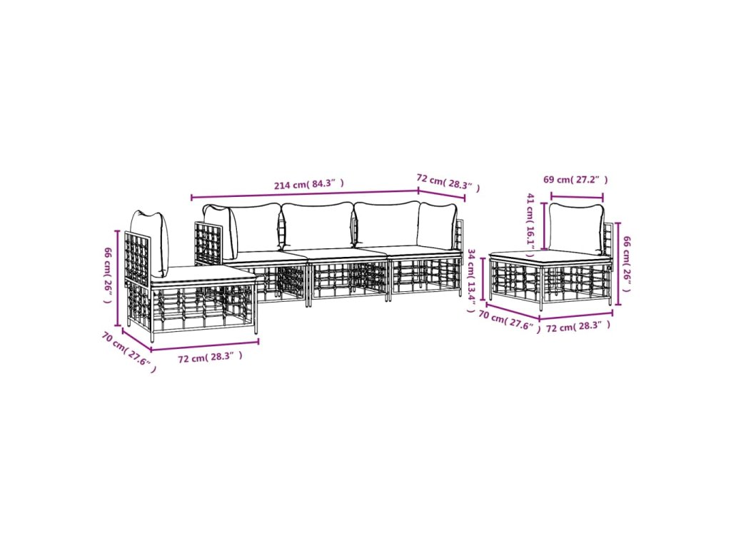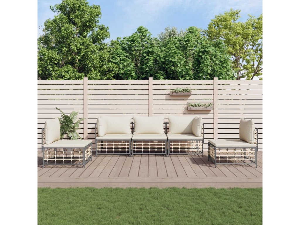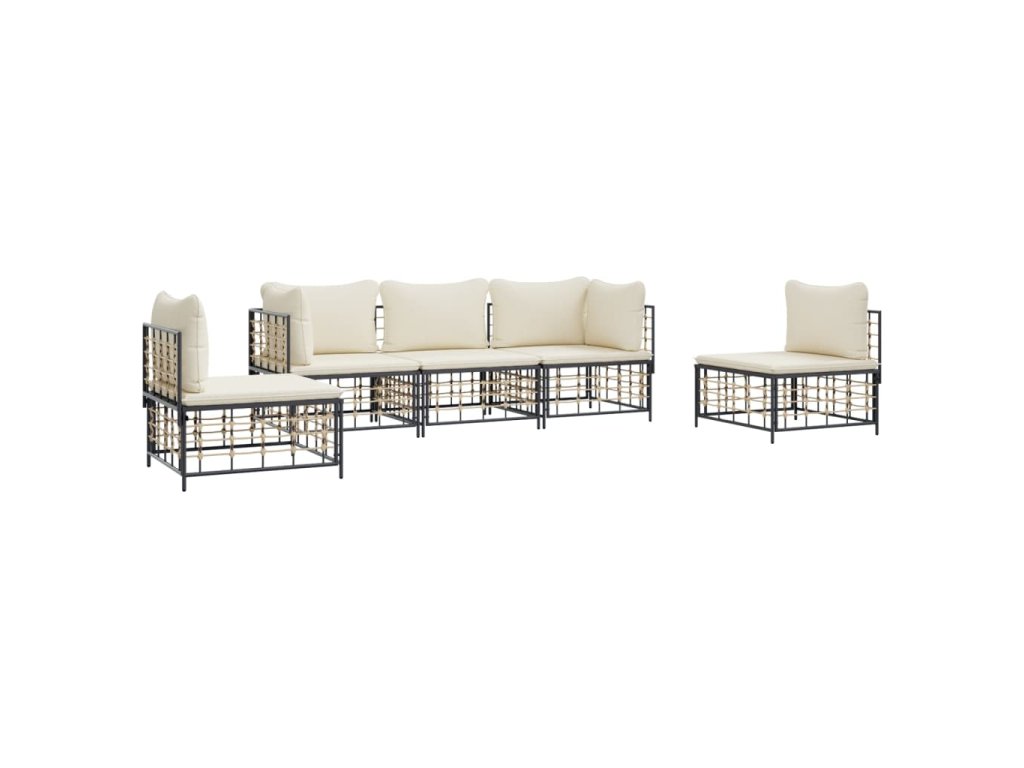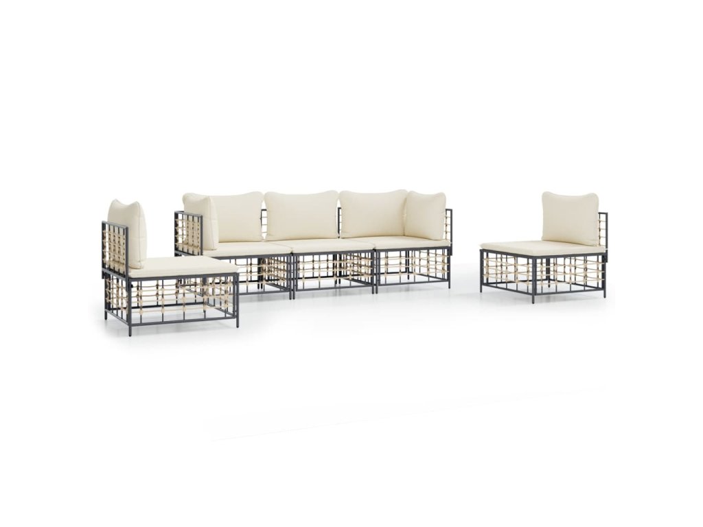5dílná zahradní sedací souprava s poduškami antracit polyratan