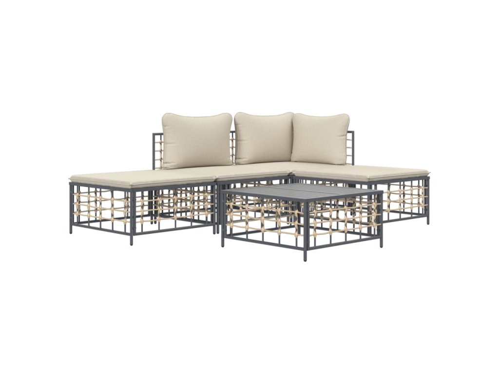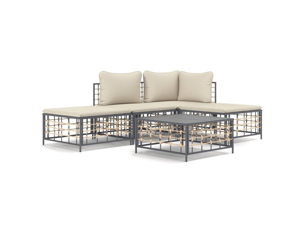 5dílná zahradní sedací souprava s poduškami antracit polyratan