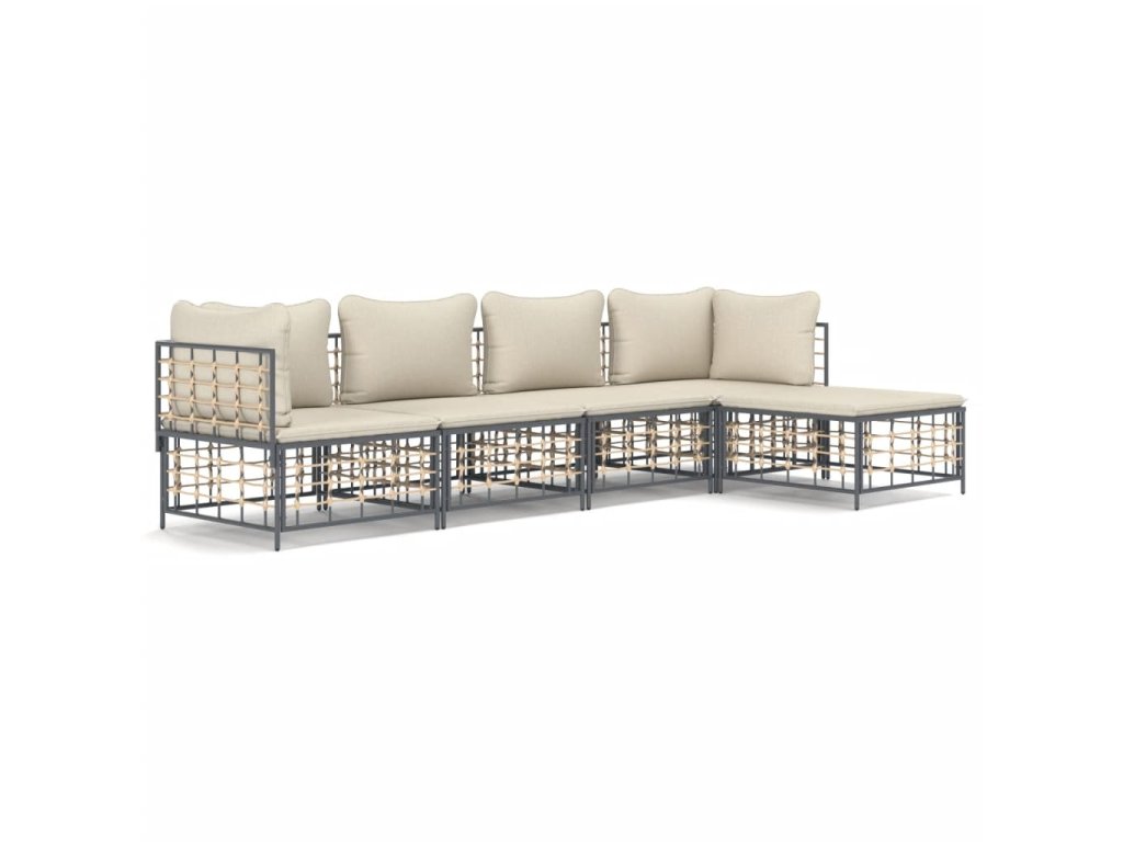 5dílná zahradní sedací souprava s poduškami antracit polyratan