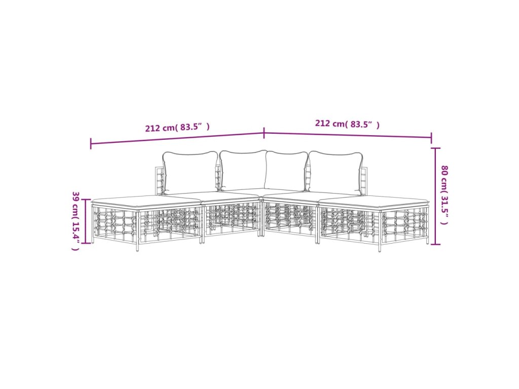 5dílná zahradní sedací souprava s poduškami antracit polyratan