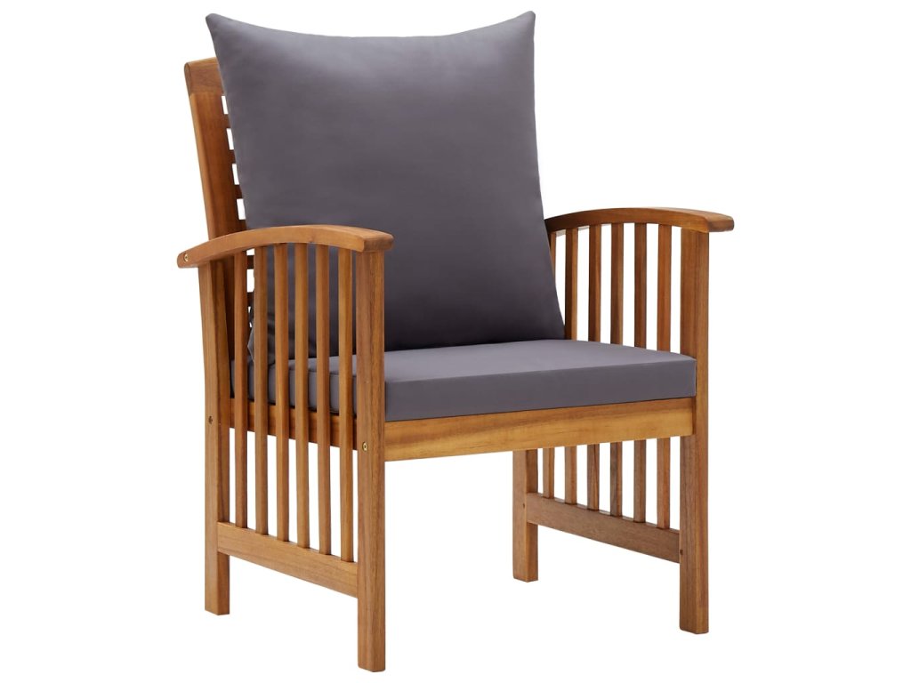 Set zahradního nábytku je zhotovený z masivního akáciového dřeva s olejovou úpravou, je stabilní a má dlouhou životnost. Tlusté podušky na sedák a opěradlo poskytují měkké posezení. Konferenční stolek s masivní dřevěnou stolní deskou s lamelovým designem poslouží jako perfektní odkládací plocha pro vaše občerstvení, mísy s ovocem, dekorativní předměty a další nezbytnosti. Na lavičce a židlích s lehce zaobleným opěradlem a loketními opěrkami se velmi pohodlně sedí.