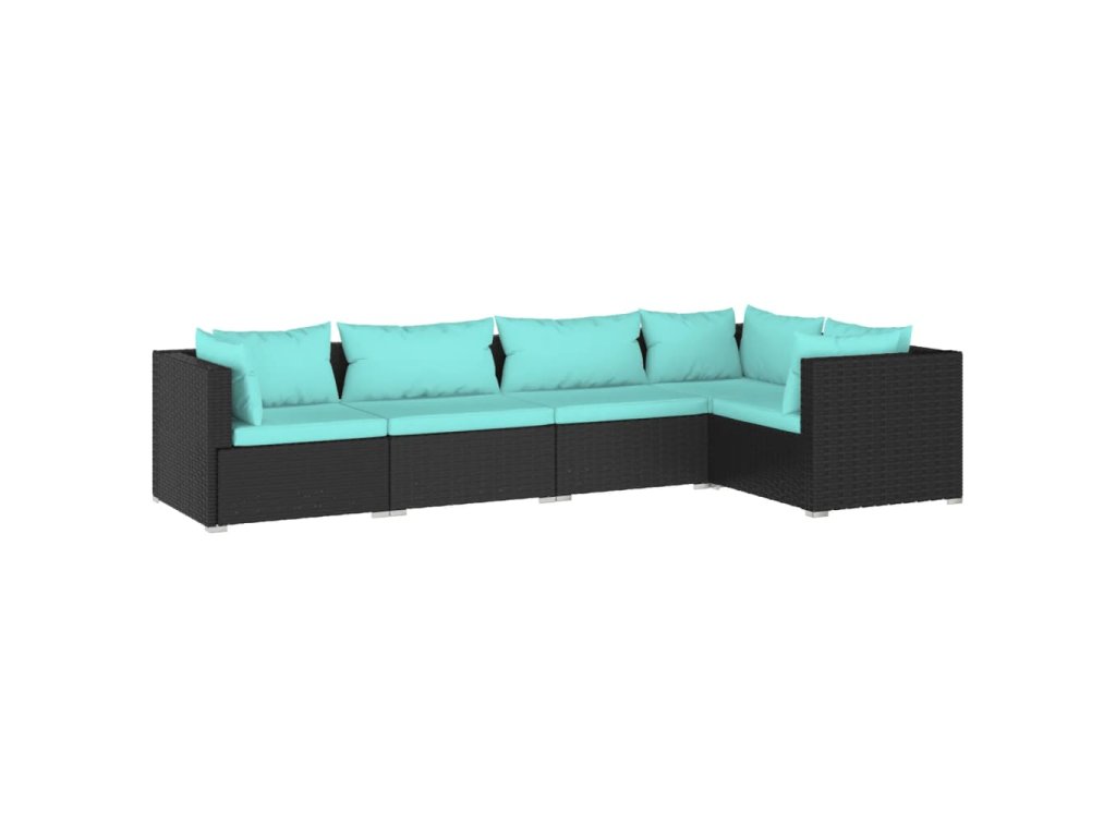 5dílná zahradní sedací souprava s poduškami polyratan černá