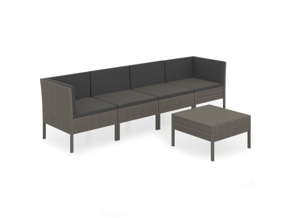 5dílná zahradní sedací souprava s poduškami polyratan šedá
