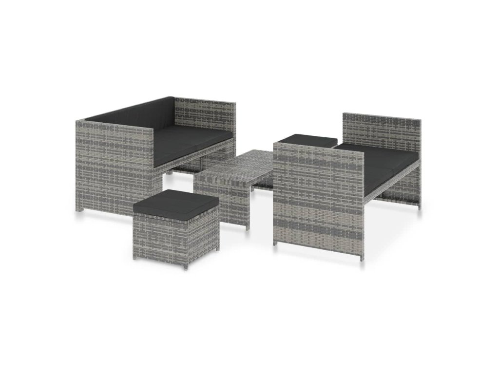 5dílná zahradní sedací souprava s poduškami polyratan šedá