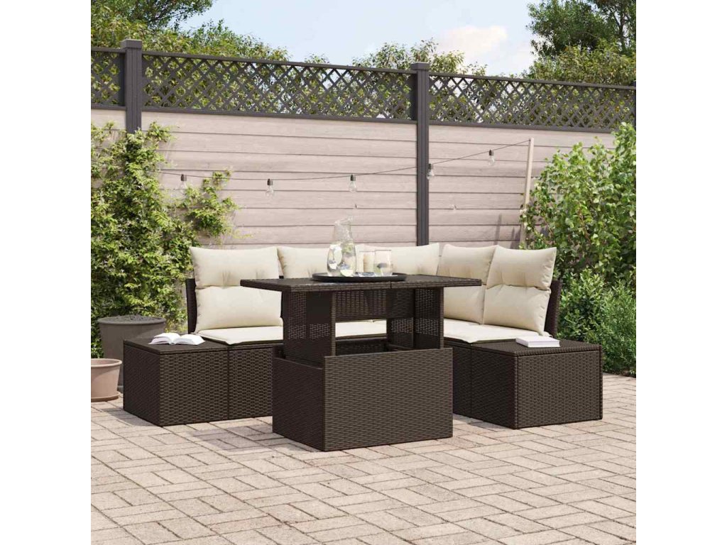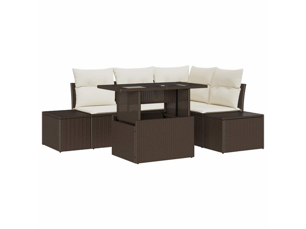 Sada zahradních pohovek s polštářem 5 pcs Hnědá polyratan