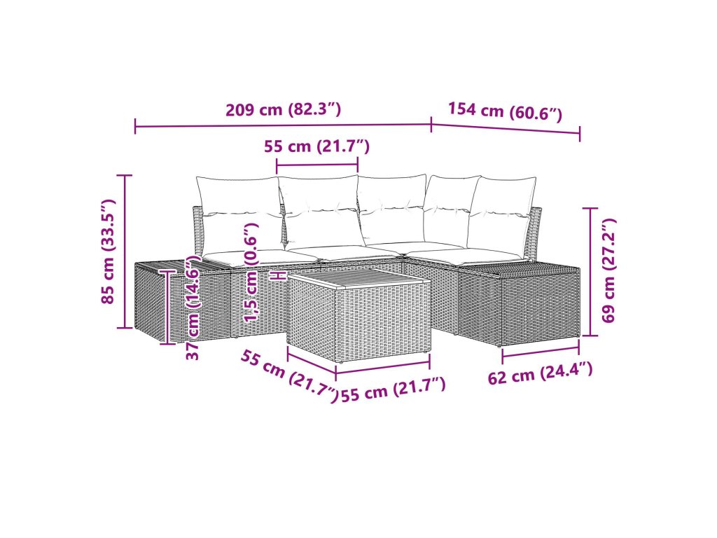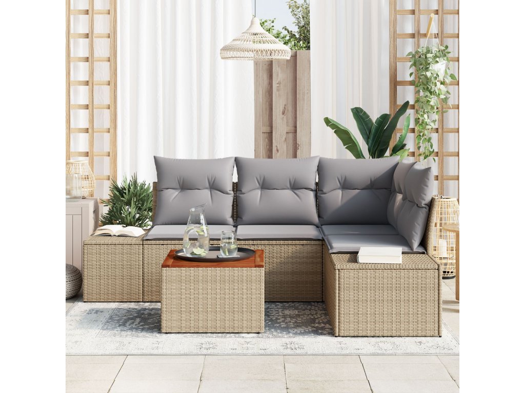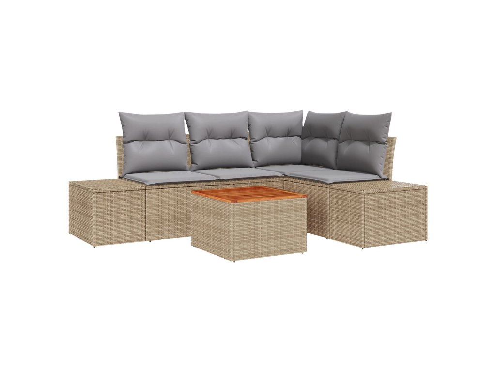 Sada zahradních pohovek s polštářem 5 pcs Béžová Poly ratan