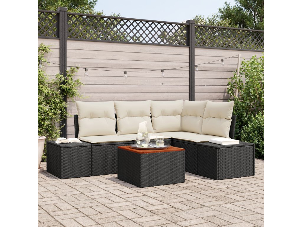 Sada zahradních pohovek s polštářem 5 pcs Černá Poly ratan