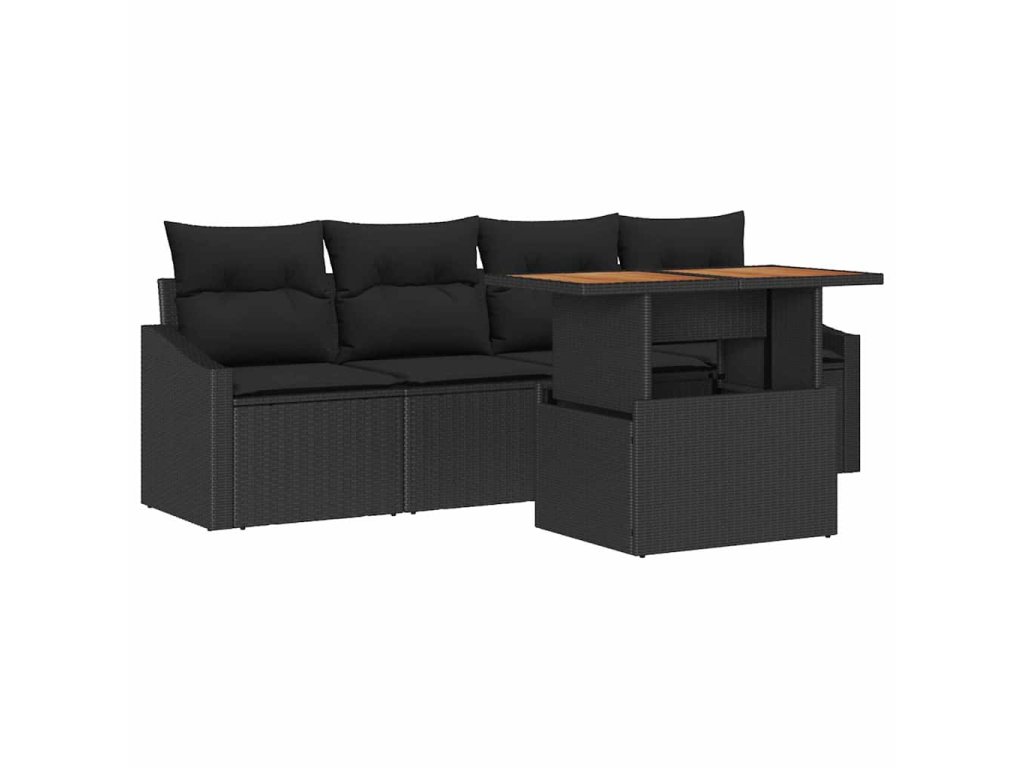 Sada zahradních pohovek s úložištěm 5 pcs Černá Poly ratan