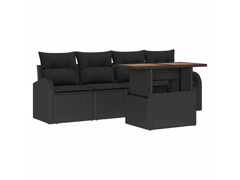 Sada zahradních pohovek s úložištěm 5 pcs Černá Poly ratan