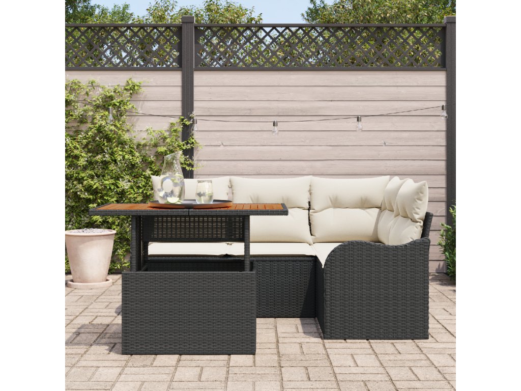 Sada zahradních pohovek 5 pcs Černá a krémová polyratan