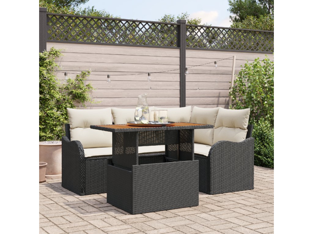 Sada zahradních pohovek s polštářem 5 pcs Černá a krémová