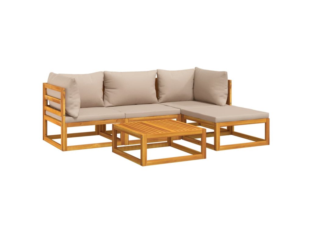 5dílná zahradní sedací souprava s taupe poduškami masivní dřevo