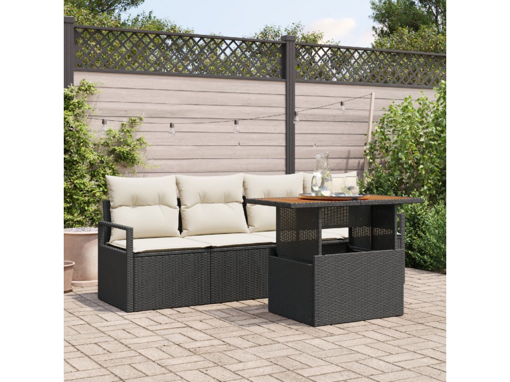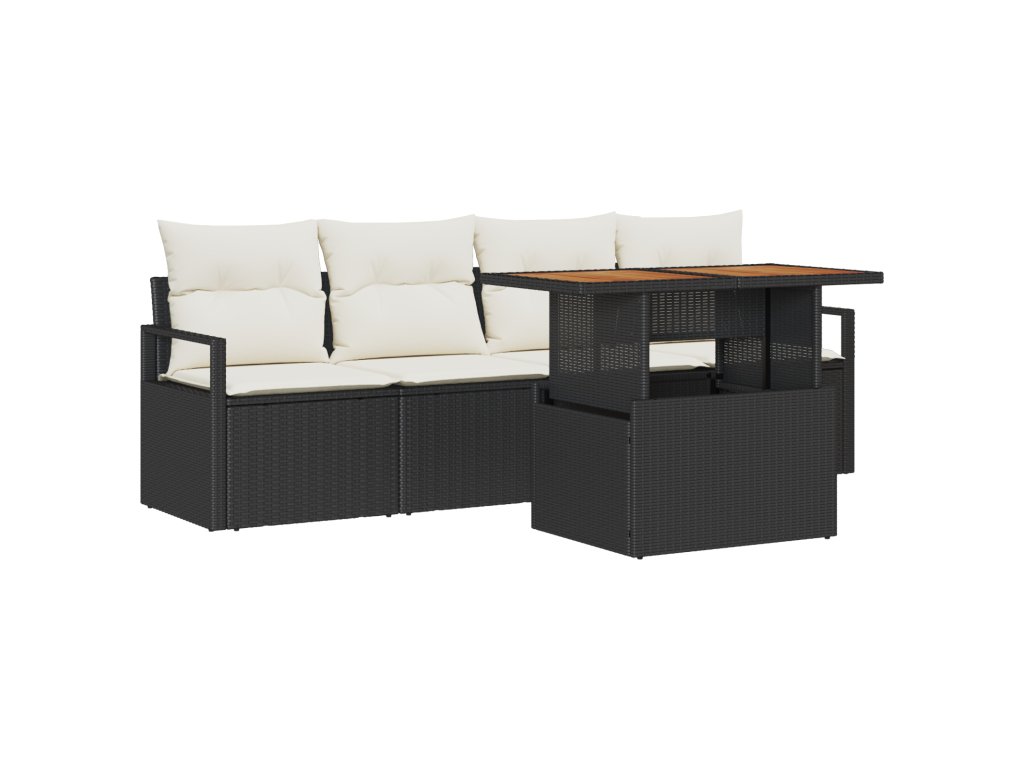 Prémiové materiály: Tato zahradní pohovka je z kvalitního poly ratanu na práškově lakovaném ocelovém rámu, takže je odolná proti běžnému opotřebení. Stůl z akáciového dřeva dodává eleganci a teplo. Tato kombinace zůstává stylová a odolná i při špatném počasí. Funkční prvky: Souprava obsahuje dvě pohovky s opěrkami a dvě středová místa se zabudovaným úložným prostorem pro vaše venkovní věci. K tomu pevný zahradní stůl z akáciového dřeva, ideální na jídlo nebo neformální setkání. Všechno je navržené tak, abyste měli uspořádaný venkovní prostor. Design a funkčnost: Tato souprava se zaměřuje na funkčnost s UV-odolnými materiály, které chrání před sluncem, a odnímatelnými polštáři pro snadnou údržbu. Moderní, minimalistický styl se hodí do každé zahrady nebo na terasu, přináší vám styl a praktičnost. Praktické využití: Ideální pro zahrady a terasy, tahle pohovka vybízí k relaxaci a socializaci. Ať už zvete přátele, nebo trávíte čas s rodinou, její flexibilní design se přizpůsobí aktuálnímu dění. Jednoduchá údržba: Udržet soupravu v dobrém stavu je snadný úkol. Stačí otřít ratanové plochy vlhkým hadříkem a dát na ni kryt, když ji nepoužíváte. Polštáře se snadno sundavají pro rychlou výměnu, takže udržují všechno svěží a pohodlné.- Barva: Černá a krémová