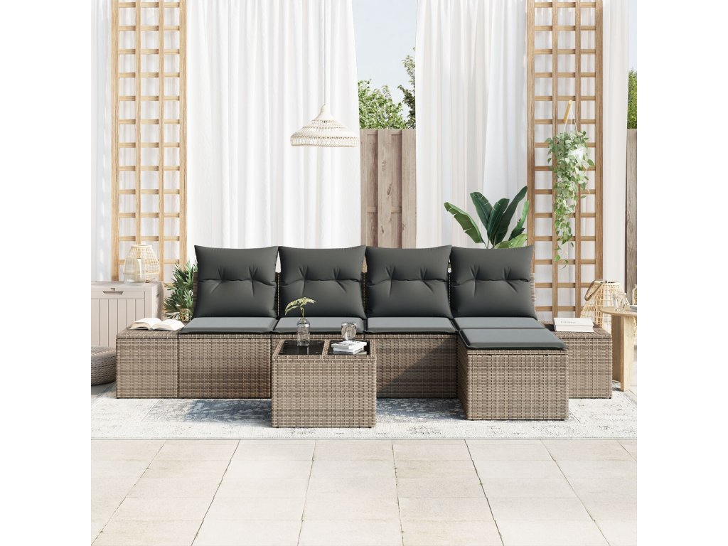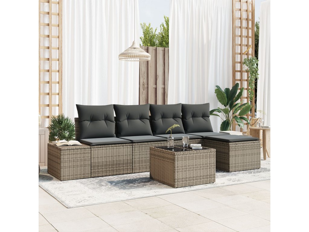 Sada zahradních pohovek s polštářem 6 pcs Šedá polyratan