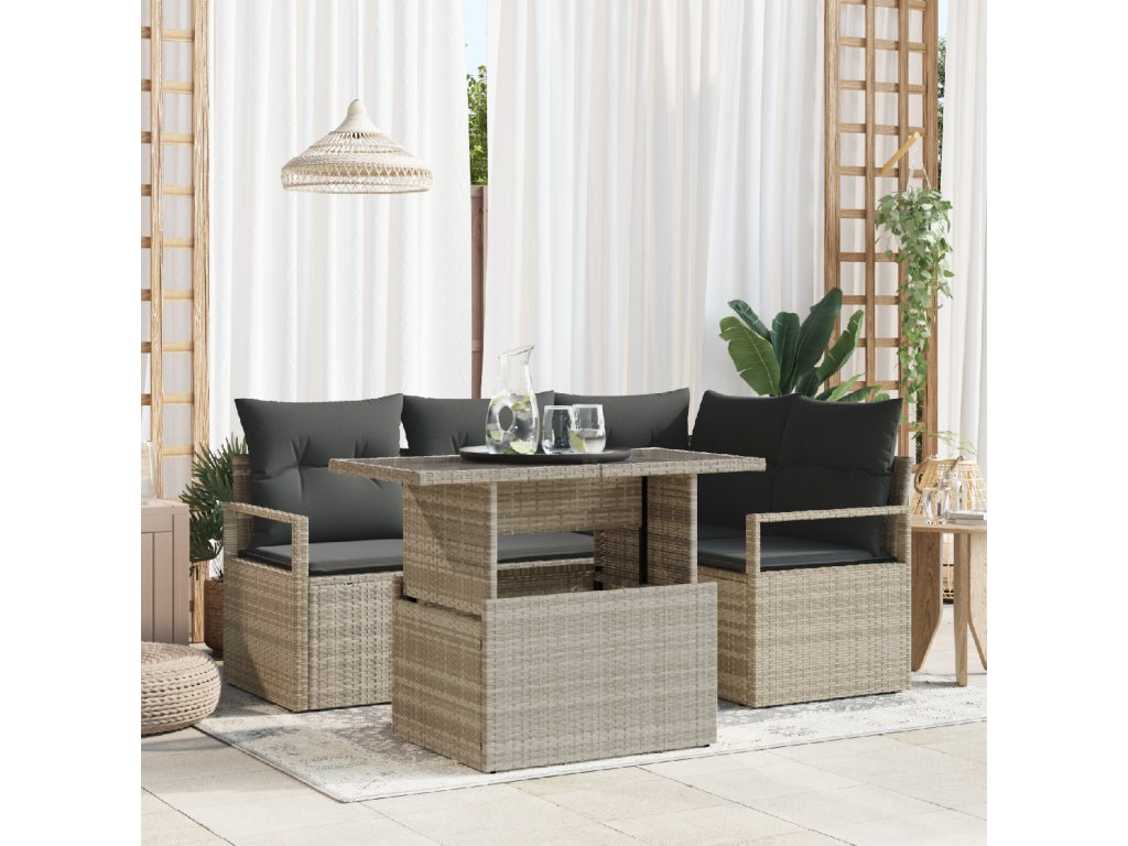 Robustní materiály: Pohovka je vyrobená z kvalitního poly ratanu, vydrží UV záření a vodu. Práškově lakovaný ocelový rám jí dodává potřebnou stabilitu a dlouhou životnost. Tyto materiály dělají z pohovky skvělou volbu pro venkovní použití. Vícesložková konfigurace: Sestava obsahuje rohové sedadlo, centrální sedadlo, dvě křesla a stůl, což nabízí spoustu místa k sezení a sjednocený vzhled pro všechny venkovní prostory. Každou část můžeš snadno přeuspořádat podle svých potřeb a vytvořit si tak vlastní prostor k posezení. Moderní funkčnost: Funkční a úložné prvky dodávají této zahradní pohovce praktické výhody pro venkovní lenošení. Je odolná a dlouhotrvající, i v létě si zachová svůj vzhled bez blednutí. Lesklý povrch dodává moderní dojem a odolává povětrnostním vlivům. Všestranné možnosti použití: Perfektní pro otevřené prostory, zahrady a terasy, pohovka se přizpůsobí různým potřebám při zábavě nebo lenošení. Skvěle se hodí na rodinné oslavy, čtecí koutky nebo jako extra sezení během večírků, přičemž poskytuje skvělou rovnováhu mezi stylem a užitkem. Péče o údržbu: Aby pohovka vypadala pořád jako nová, používej kryt, když ji nepoužíváš, a ukládej polštáře dovnitř, když je špatné počasí. Tento jednoduchý přístup pomůže udržet její atraktivitu a usnadní údržbu, což ti umožní si vychutnat léta pohody a radosti s touto sadou.- Barva: Světle šedá