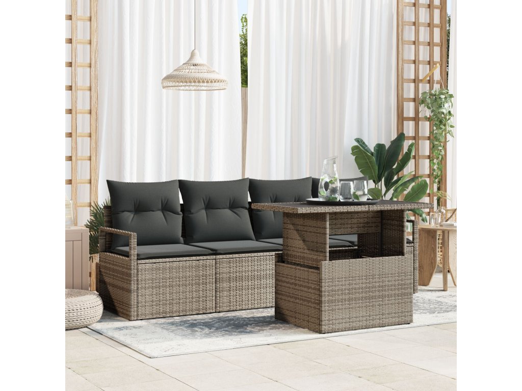 Set pohovek s polštářem 5 pcs Šedá polyratan
