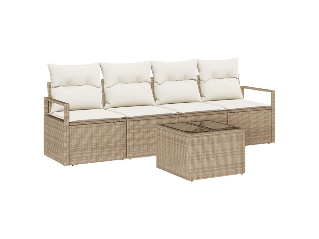 Set pohovek s polštářem 5 pcs Béžová a krémová polyratan
