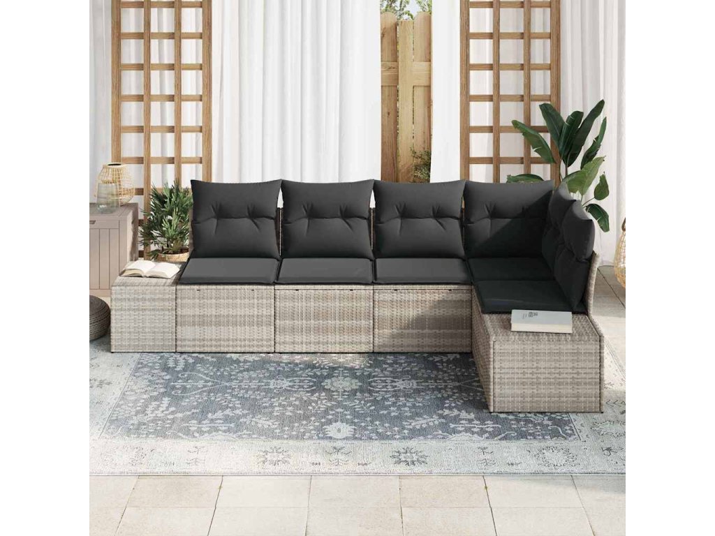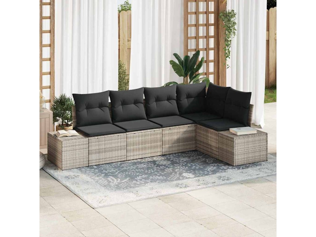 Sada zahradních pohovek s polštářem 5 pcs Světle šedá polyratan