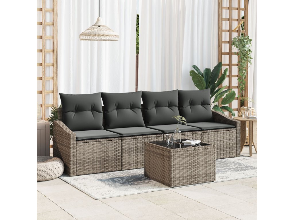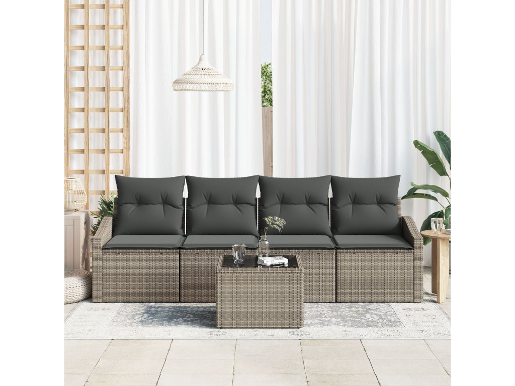 Set pohovek s polštářem s polštářem 5 pcs Šedá polyratan
