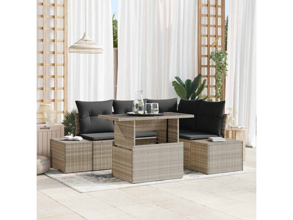 Sada zahradních pohovek s polštářem 5 pcs Světle šedá polyratan