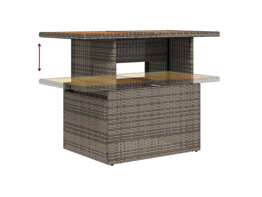 - Součásti: Set se skládá ze dvou širokých pohovek a dvou středových sedadel s voděodolnými taškami pro úložný prostor, plus stylového zahradního stolu. Sedačky jsou z poly ratanu pro pohodlné lenošení. Každý kousek je promyšlený, aby udržel váš venkovní prostor uklizený a elegantní.